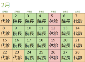 2月の担当医カレンダーです。