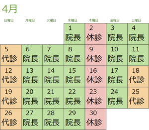 4月の担当医カレンダーです。