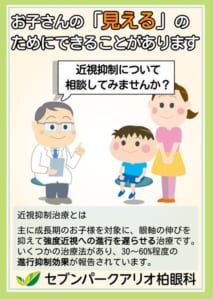 当院では、近視の進行を抑える治療として、多焦点コンタクトレンズを 取り扱っています。多焦点コンタクトレンズは目の周辺部に生じる網膜の ピントのズレを軽減し近視の原因のひとつである眼軸の過度な伸長を 抑制することで、近視の進行予防が期待される治療法です。 気になる方は当院までお気軽にご相談ください。