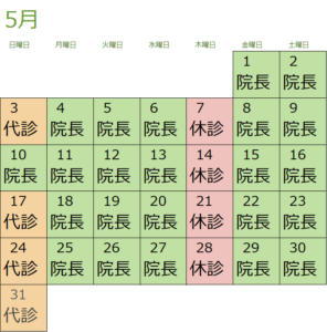 5月の担当医カレンダーです。